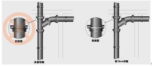 工藝規(guī)定承插口之間應(yīng)留約10mm間隙,以利伸縮,操作中多忽略此點而將承插口抵死。應(yīng)事先作出標(biāo)記,保證留有間隙。