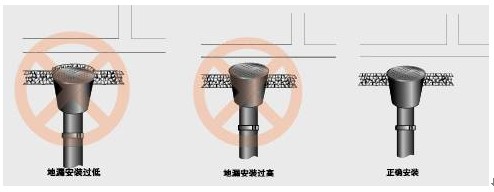 地漏安裝過高,影響排水功能;安裝過低,影響地面美觀。在安裝排水管承水口前,應(yīng)確切了解地漏規(guī)格和地面裝飾層厚度,計算出排水承口的合理標(biāo)高。